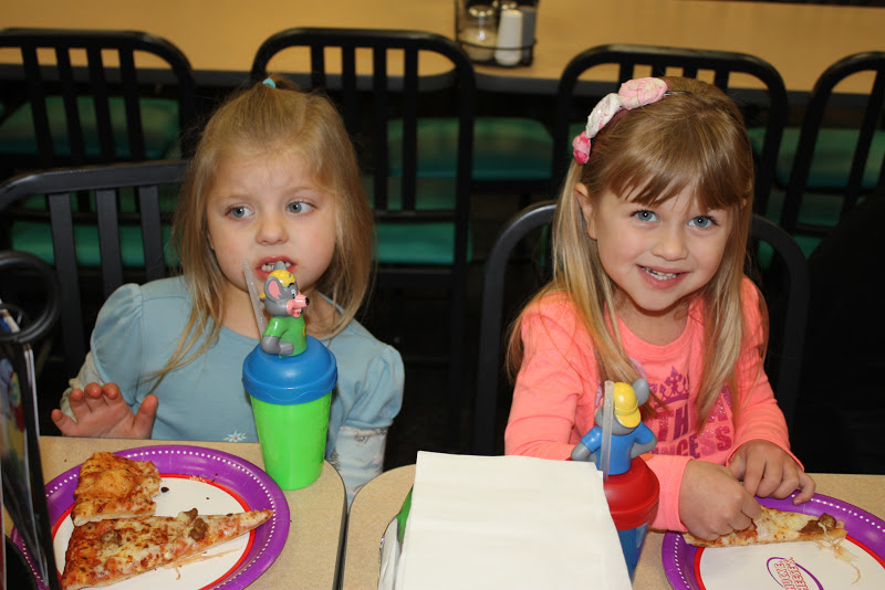 Having some pizza at Chuck E Cheese!